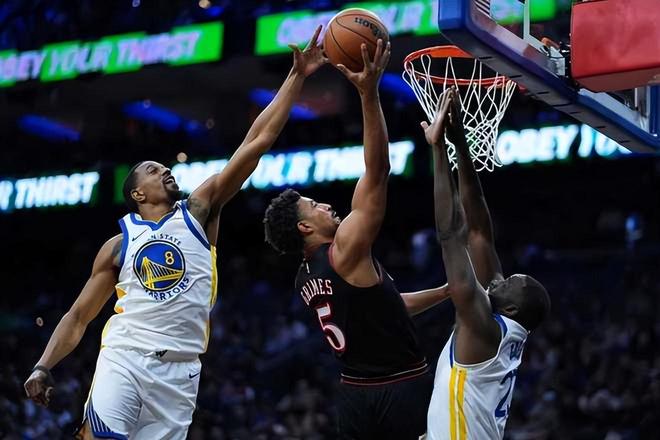 库里和巴特勒的缺阵,让勇士缺少进攻端的中心,而库明加、格林等人也支撑不起来得分的重任。穆迪、理查德在此时挺身而出,接连命中远投,勇士在第二节初段打出一波10-0的攻势缩小分差。格兰姆斯三分得手,埃奇库姆也跳投得分,费城很快便稳住了局势。格兰姆斯抢到前场篮板球将球补进,费城重新建立了20分的领先优势。库明加补篮得分,希尔德外线命中三分球,麦凯恩也在攻守转换间回应一记三分球,费城在上半场结束时领先勇士22分。