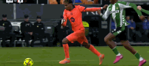 第77分钟,亚马尔传球,费兰抢点稍慢一步