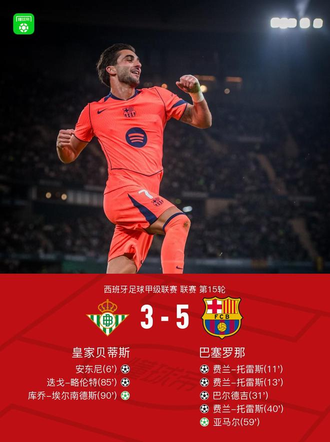 剑南春|巴萨5-3贝蒂斯迎西甲6连胜,费兰戴帽,亚马尔点射